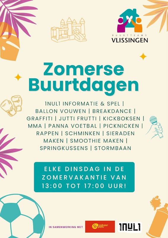 De Zomerse Buurtdagen zijn vanmiddag succesvol van start gegaan. Het Krajicekgrasveld zag er meer dan aantrekkelijk uit met o.a. springkussens, een tent waar je smoothies en sieraden kon maken, verder ballonnen vouwen, geschminkt worden, maar ook kickboksen, breakdance en rappen. Een fijne speelmiddag voor de kinderen. Voor de ouders was er koffie, thee en terras. GOED GEDAAN BUURTTEAMS EN VRIJWILLIGERS!!