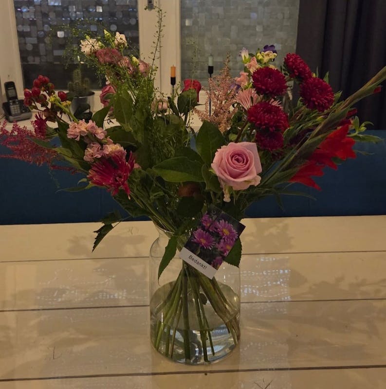 Op de foto een prachtige bos bloemen die ik als dank heb ontvangen.